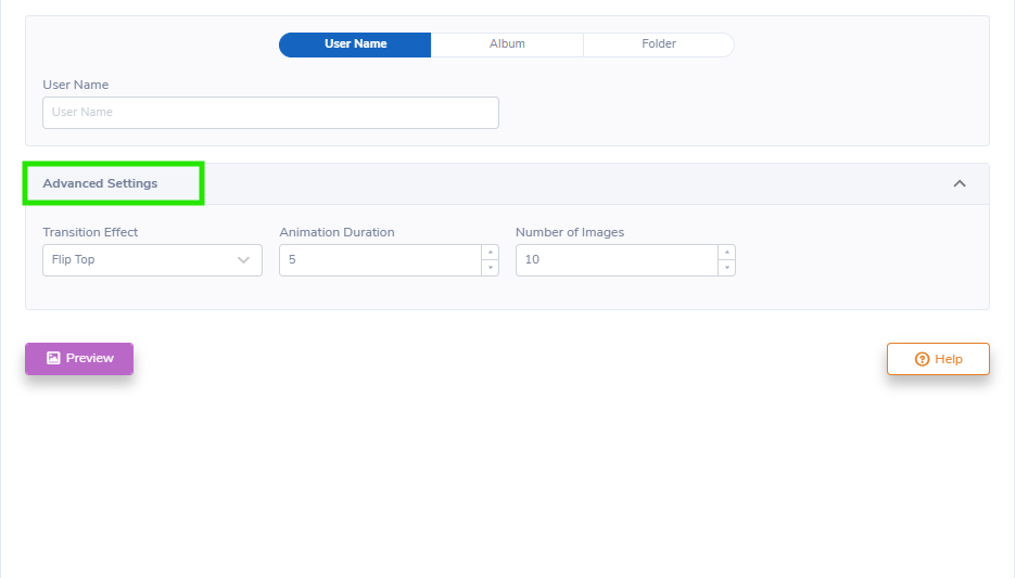 - If you would like to display a folder, enter the folder's name in the "FOLDER' field. This will pull data from your specific SmugMug folder.