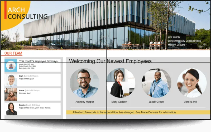 A crucial part of the digital signage video wall investment is the company’s long-term plan. Is the video wall permanent? Will consultants be brought on to produce new content over time? Who’s responsible for the ongoing support and maintenance of each screen?
