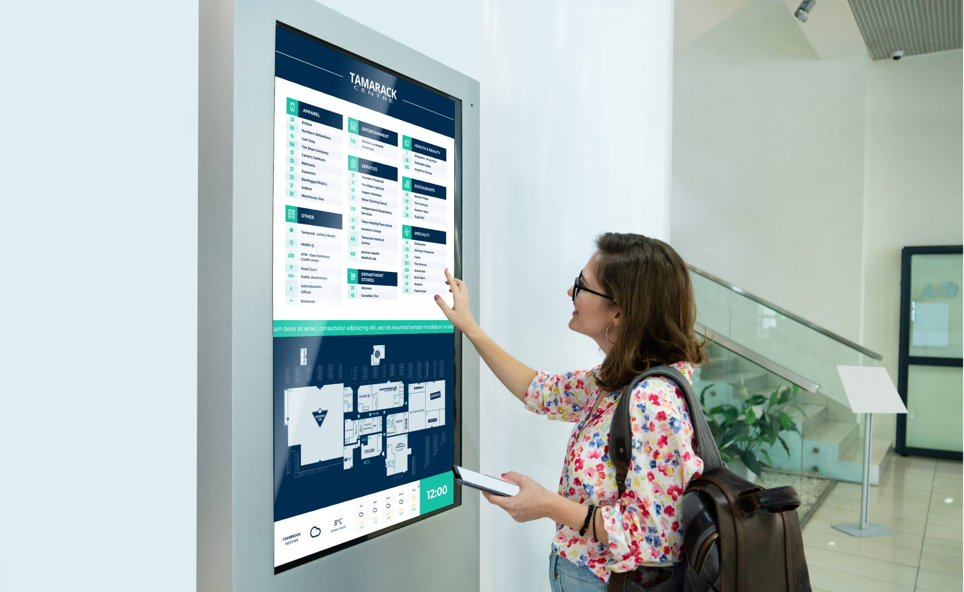 - Touch & Interactive Displays: Wayfinding kiosks and branded customer experiences.