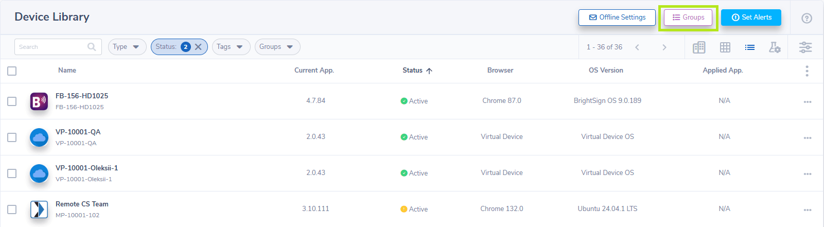 - The section on the left labeled Groups will show all scheduled groups on the account.