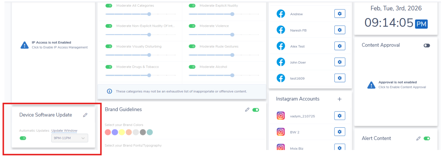 When a new software update is available for your Mvix Digital Signage Player, you can configure your account to apply it automatically, no manual intervention required. Setting up an Automatic Update Window ensures your devices stay current with the latest bug fixes, security patches, and features, all while running updates during a time that works best for your business.