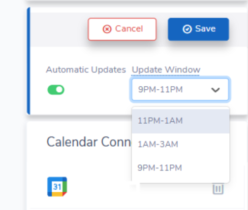 - Cllick save when you are satisfied with the setup to finalize automatic updates.