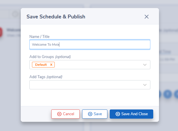 - A popup will appear where you can name your schedule, add it to groups, and add any tags.