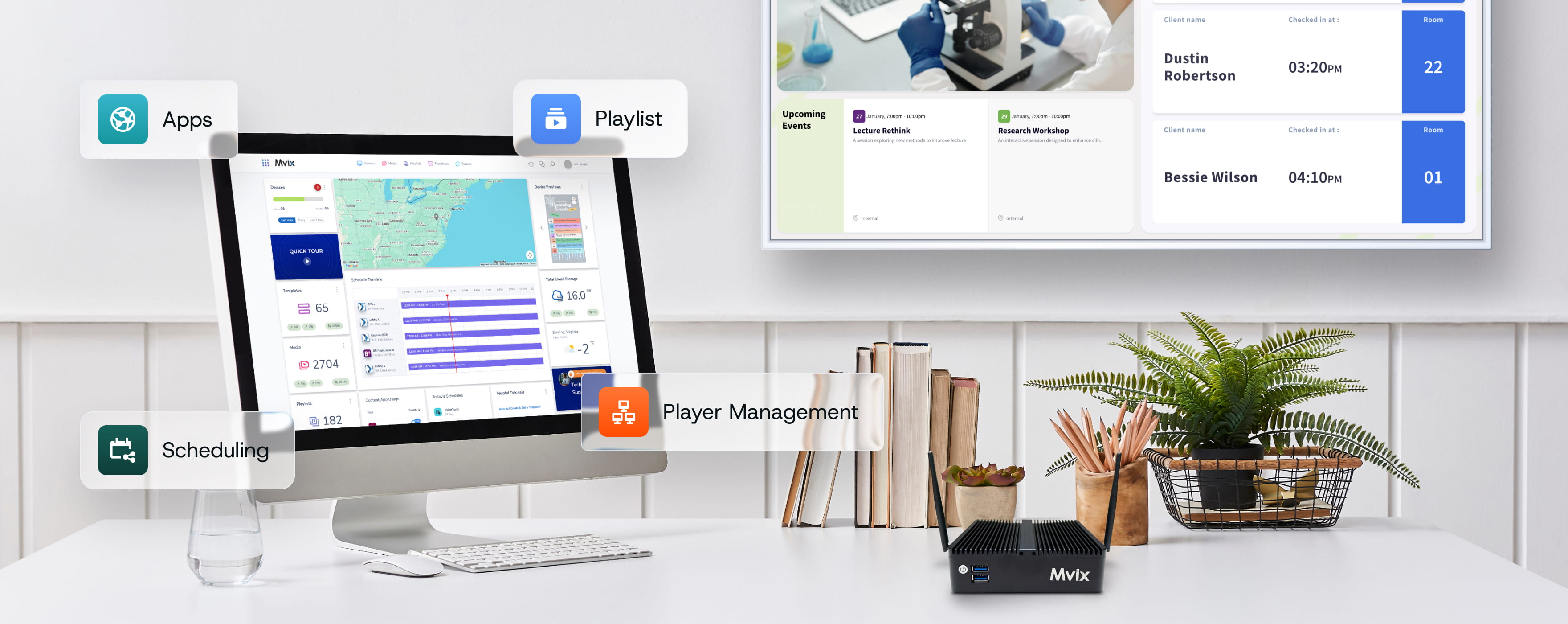 Mvix digital signage solutions for all environments include hardware, software, content and professional services that improve your communications strategy.